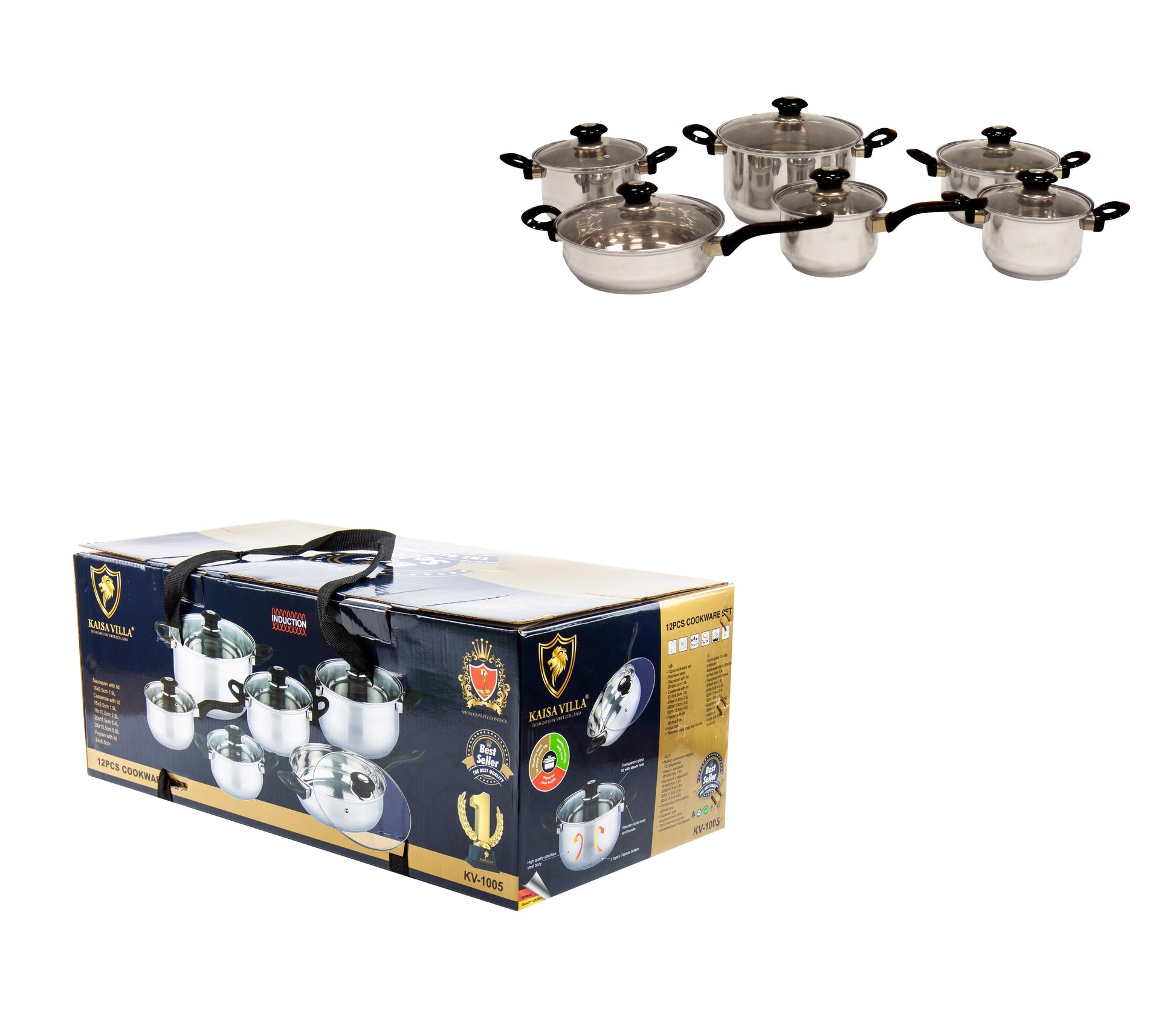 Stainless Steel Kaisa Villa Cooking Pan Set of 12 16-18-20-24cm 27286 / 3388 (Big Parcel Rate)