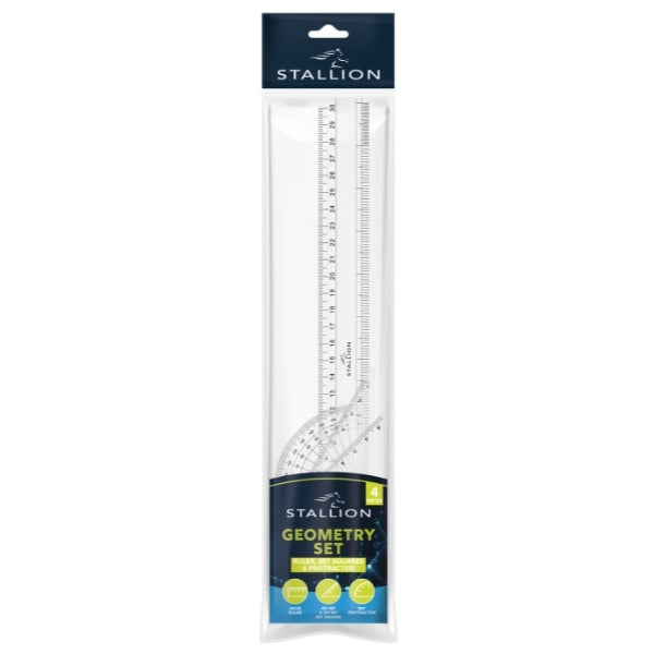 - Contents: 1 x 15cm Ruler (30mm width), 1 x 45-45 Deg' Set Square, 1 x 30-60 Deg' Set Square, 1 x 180 Deg' Protractor