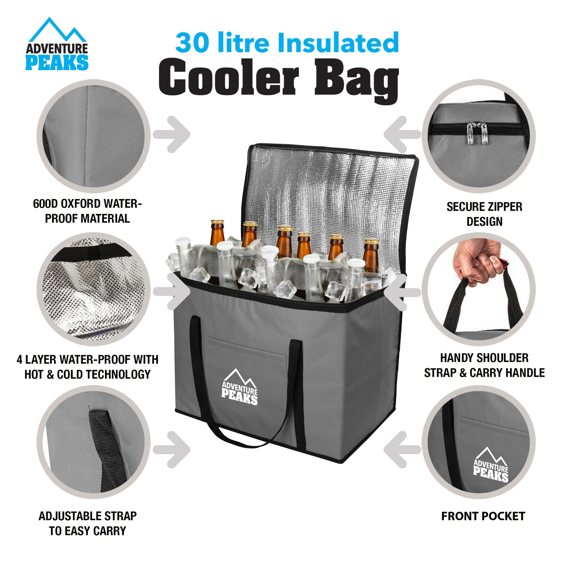 Insulated Camping Cooler Bag 30L 40 x 26 x 33cm Grey 6633 (Parcel Rate)