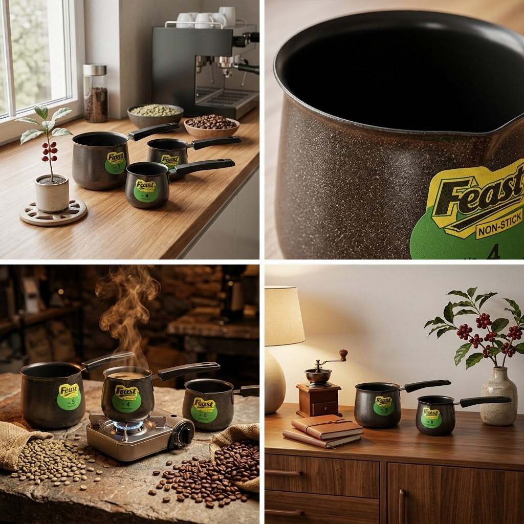 Brew exceptional Turkish coffee with this versatile three-piece ibrik set, combining traditional craftsmanship with practical lightweight design for daily use.
