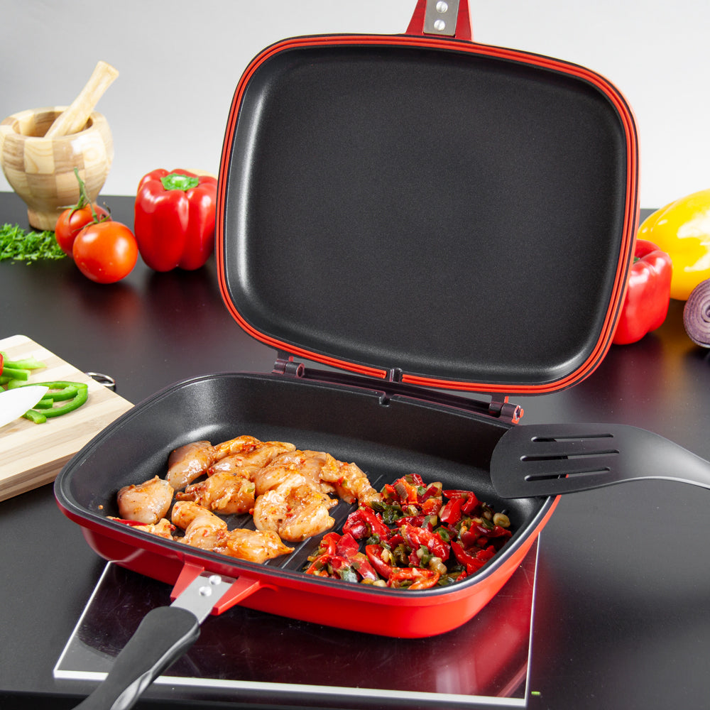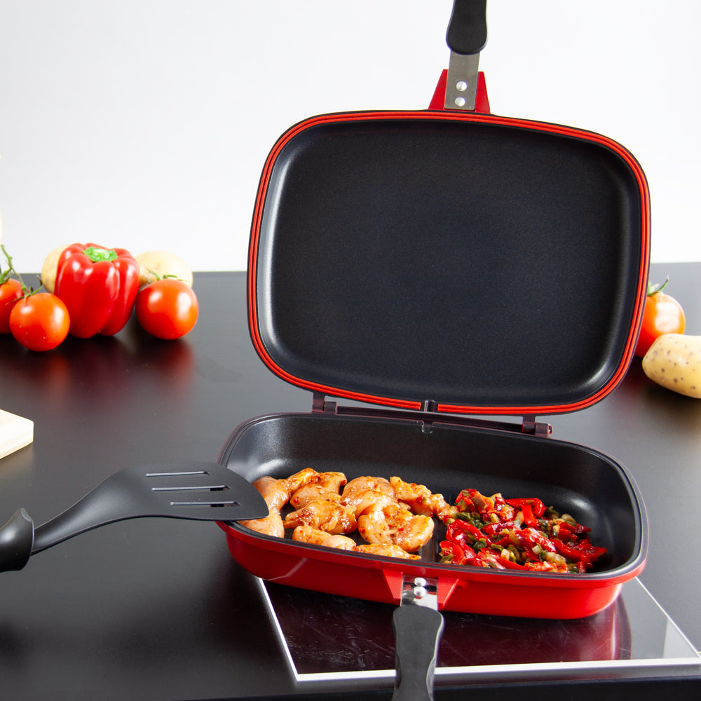 SQ Professional Nea Diecast Double Sided Magic Pan 32cm Rossa Red 4680 (Parcel Rate)